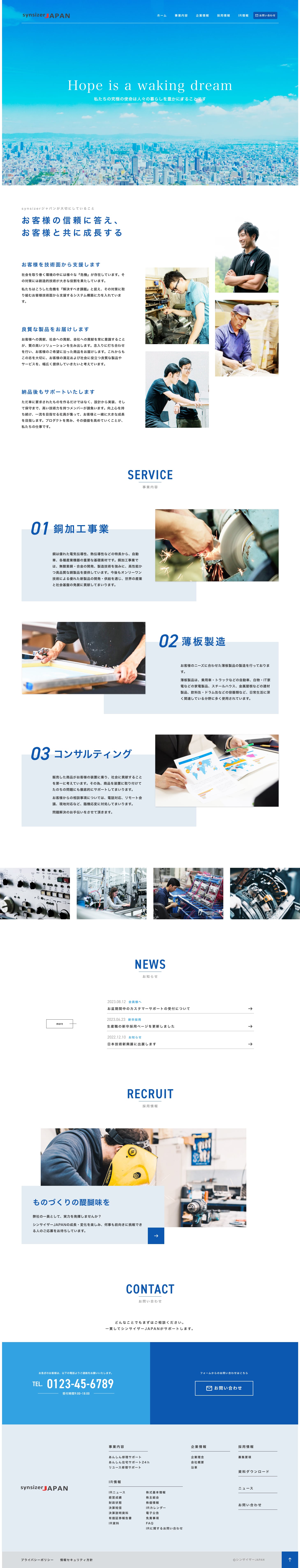 TOPページに会社概要・事業紹介・採用情報を掲載。